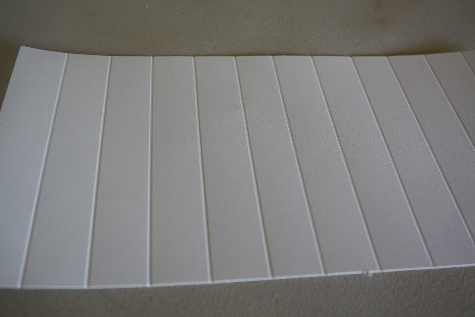 - Cut your cardstock (I used Colonial White) to 6″x12″. Cut your other papers down to whatever size you want to layout each page. There is a ton of creativity and flexibility here. Take your 6″x12″ piece of paper, and score along the 12″ side at 1″ all the way across your paper.