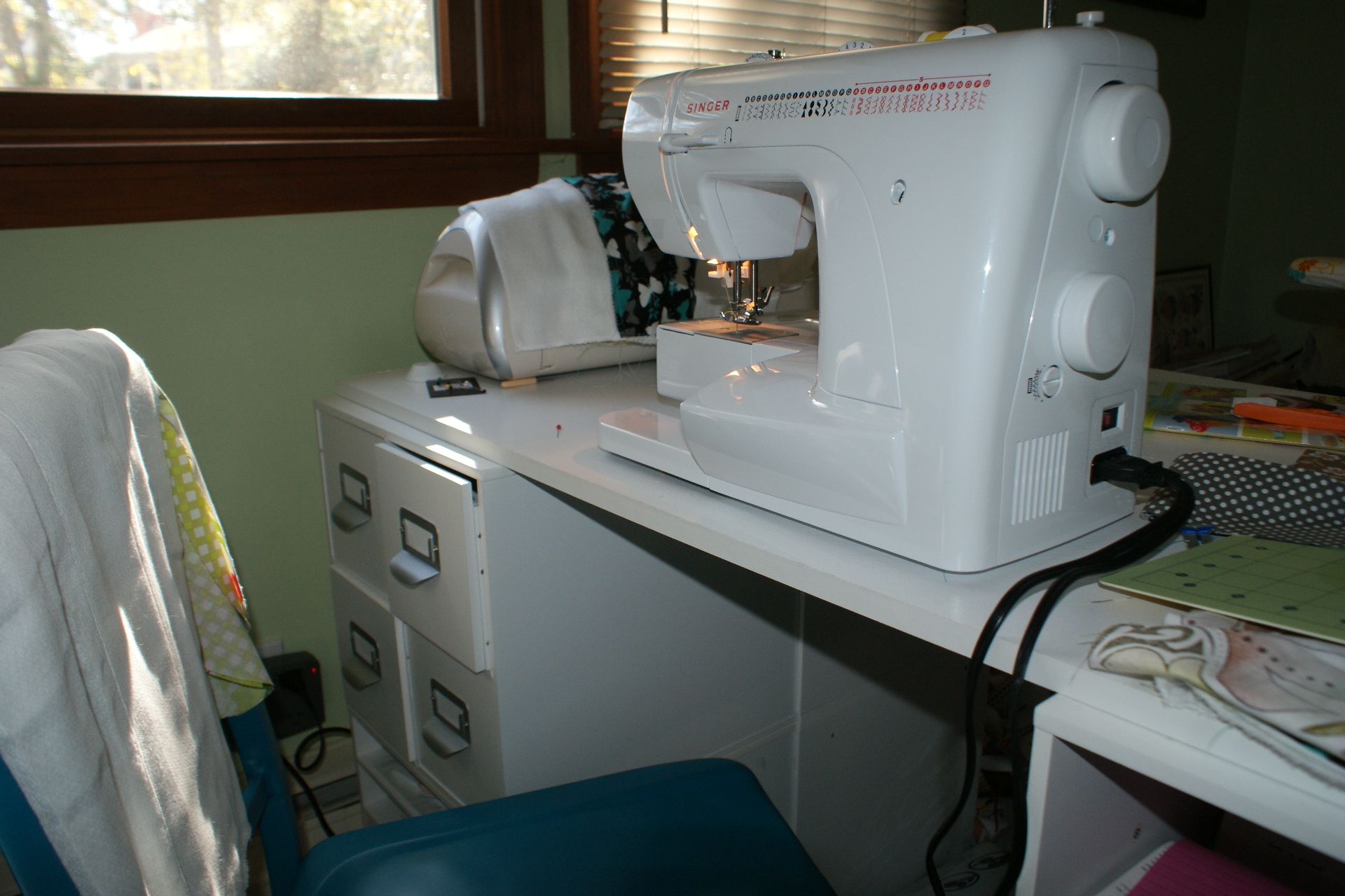 One day I’ll have a grand workspace, but for now. My space is meeting my needs. Perhaps if I got to work organizing our “desk stuff” that has no home, I would be even more inspired to create….and show you the full view of the room!