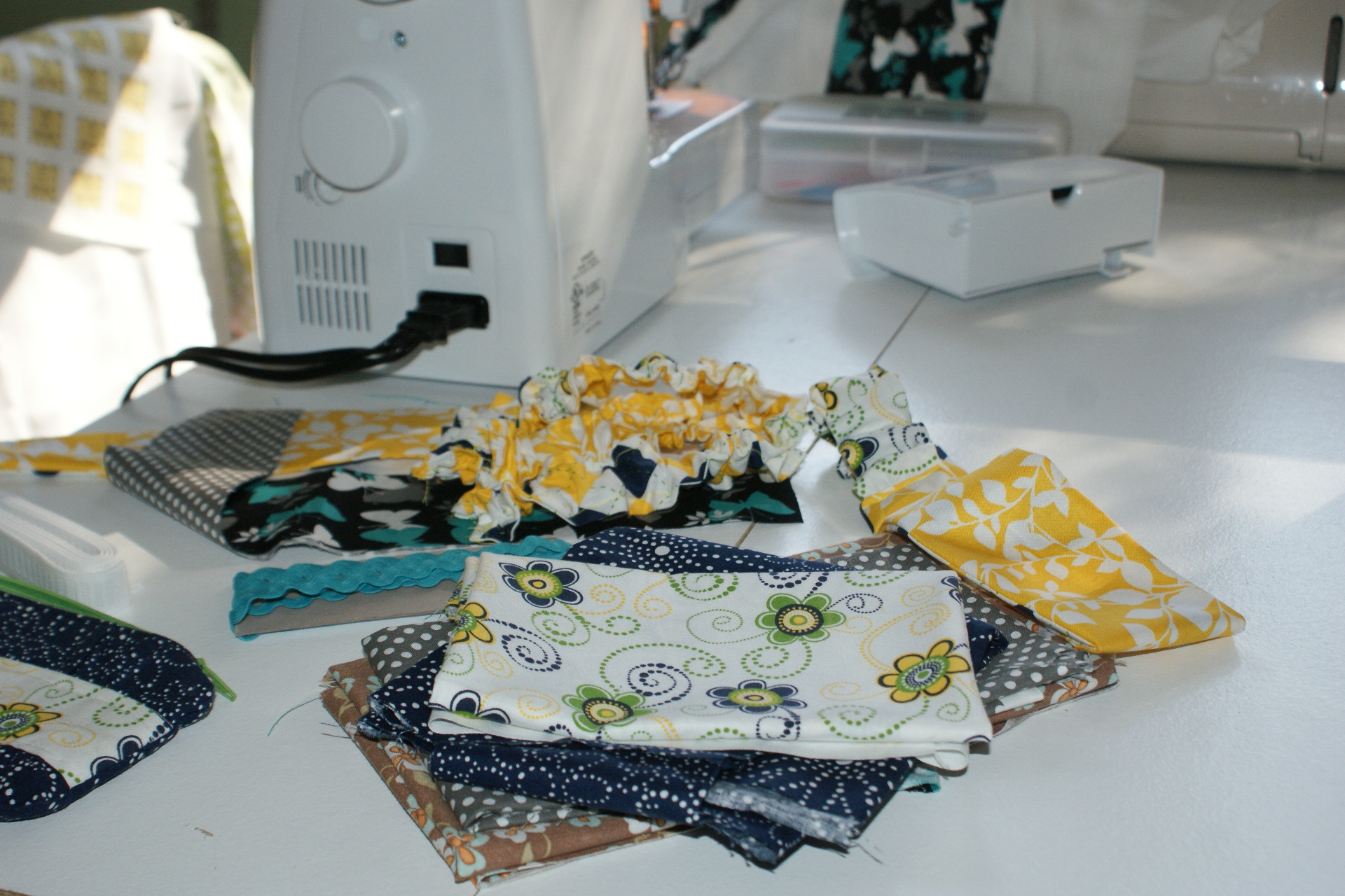 This is the cleanest my desktop has been in days! And it isn’t even clean. This shot shows some new headbands that are in the works. And a sneaky glimpse at a wristlet I’m working on, too.