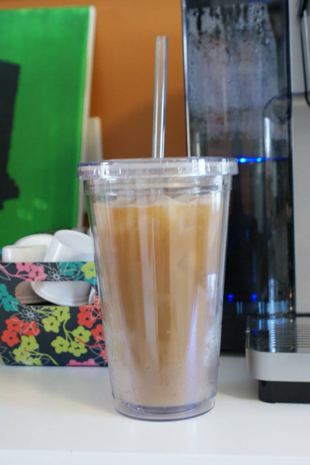 Isn’t that pretty? If you’re wondering, my insulated cup came from Old Navy. I purchased it for $2.50. That is less than the cost of a medium Iced Coffee at my local coffee shop.